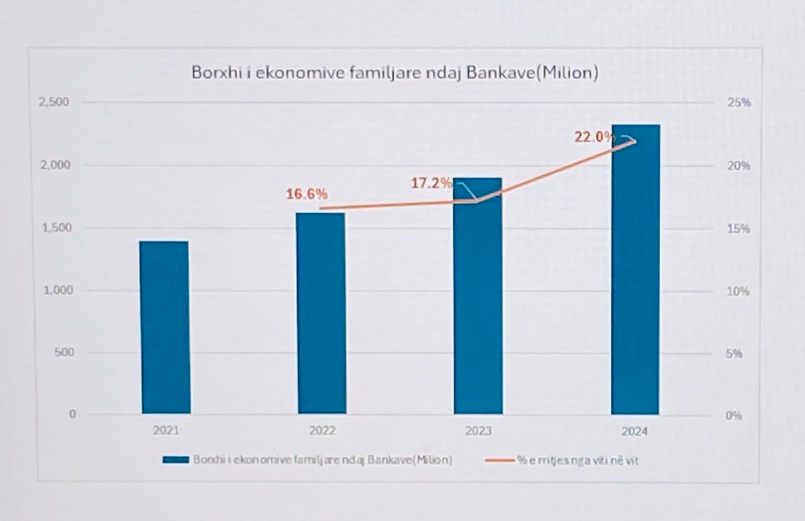 Ai shton se nëse krahasimi bëhet me vitin 2020, borxhi i qytetarëve ndaj bankave është dyfishuar, nga 1 miliard e 182 milionë euro në 2 miliardë e 336 milionë euro.