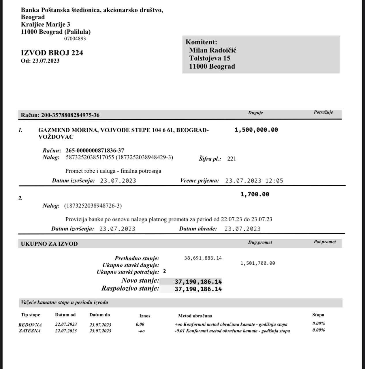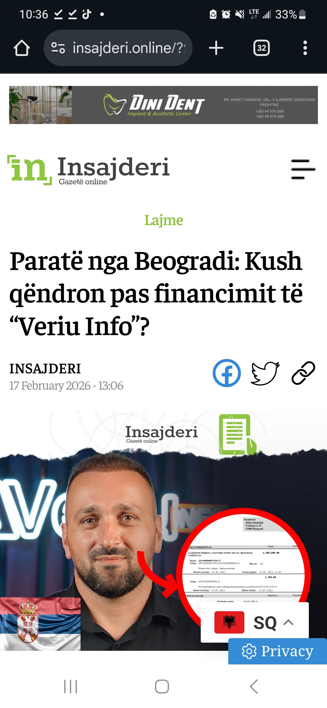 Sipas dokumentit të siguruar në kuadër të këtij hulumtimi investigator, pronari i portalit “Veriu Info”, Gazmend Morina dyshohet se ka pranuar një shumë të madhe parash përmes një banke në Beograd. Transferi është kryer nga një kompani e regjistruar në Serbi, e cila është e përfaqësuar nga biznesmeni Milan Radoićić, emër i njohur në zhvillimet politike rajonale.
