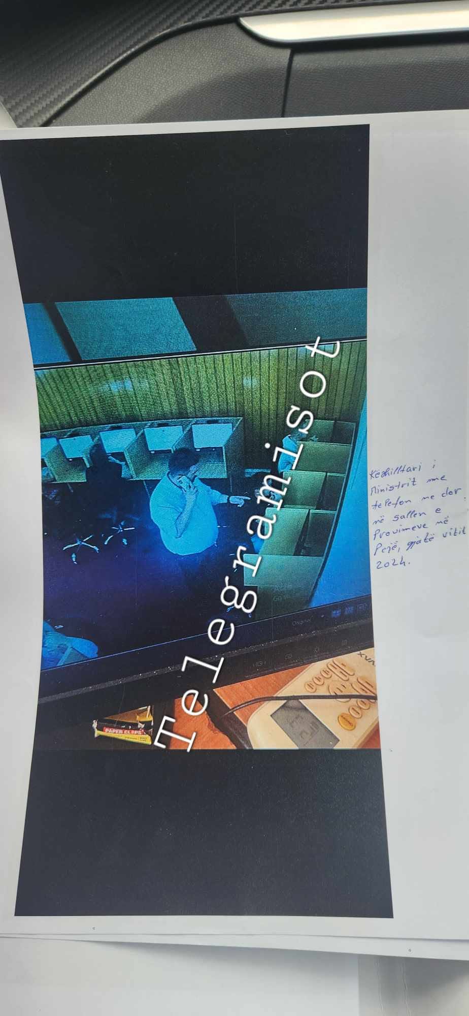 Redaksia e “Telegrami Sot” ka siguruar edhe fotografi ku shfaqet shefi i kabinetit të ministrit Liburn Aliu duke hyrë në sallat ku mbahen provimet për patentë shoferë, në kundërshtim me rregullat. Ai shihet duke folur në telefon dhe madje duke i dhënë udhëzime dikujt.