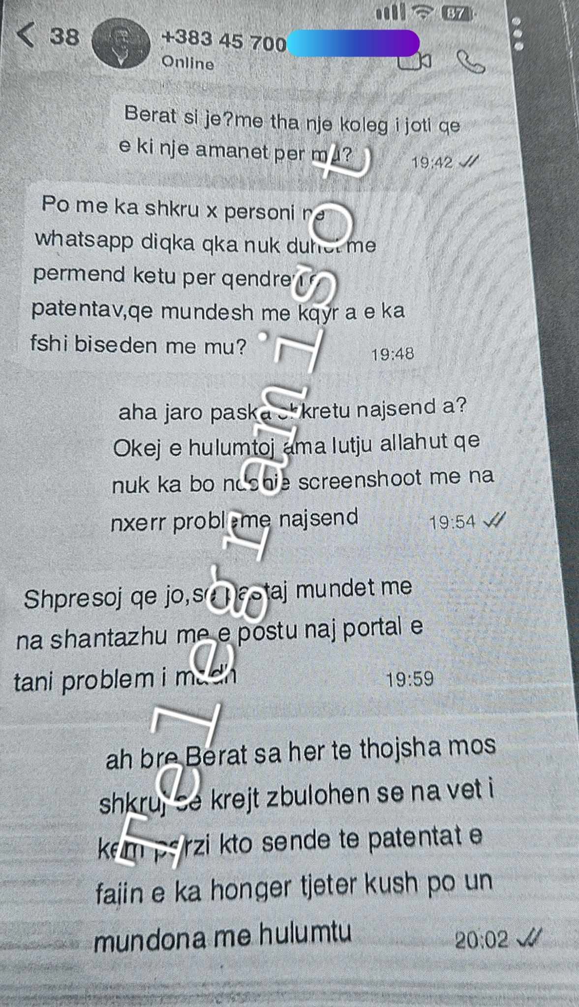 Shikoko komunikimin në wacap i siguruar nga kallëzimi penal Berat Ganiqin :