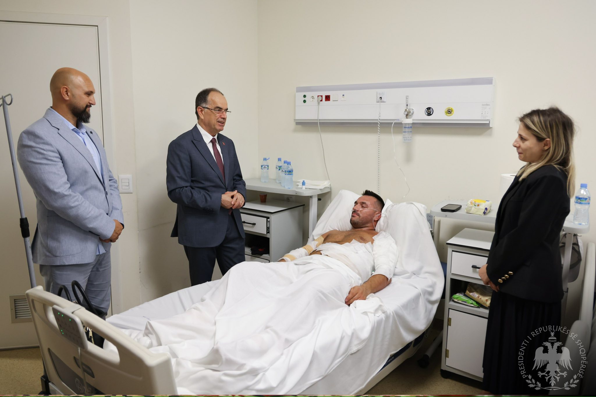 Presidenti shqiptar, Bajram Begaj ka vizituar në spital shefin e Komisariatit të Delvinës që pësoi djegie gjatë përballjes me zjarrin në zonën e Senicës.